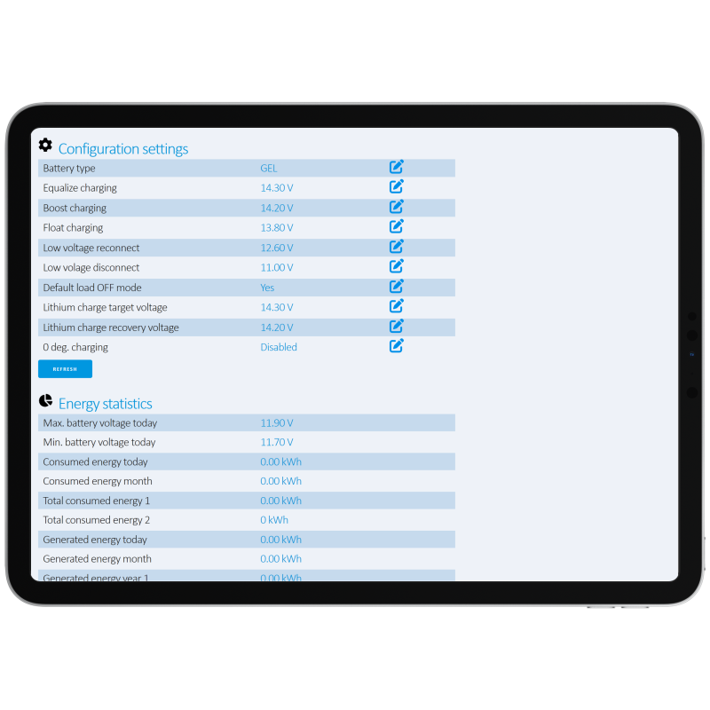 • Integracja z popularnymi regulatorami ładowania MPPT
