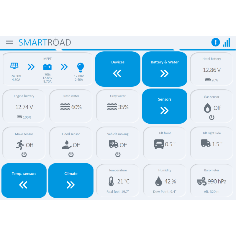 Smart Road jest inteligentnym systemem zarządzania pojazdami rekreacyjnymi w szczególności kamperami, przyczepami kempingowymi oraz małymi jachtami.